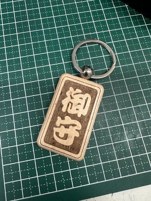 木製のキーホルダーで、お守りやお名前に適しています。